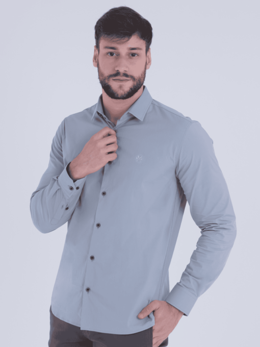 CAMISA ML BUSINESS C/ LYCRA E BORDADO SK REMOS NO TOM