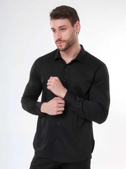 CAMISA MC BUSINESS ACETINADO C/ ELASTANO E PLAQUINHA SKYLER
