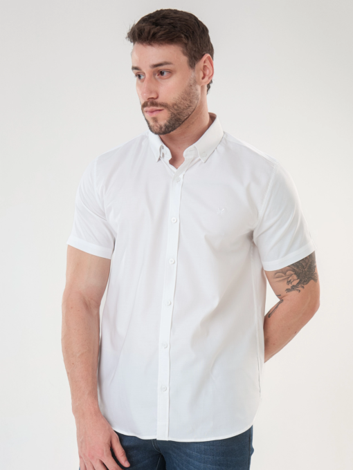CAMISA MC BUSINESS OXFORD C/ BORDADO SK REMOS NO TOM