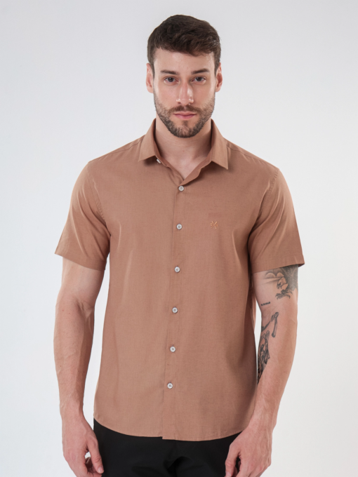 CAMISA CASUAL MC EM VISCOLINHO C/ BORDADO NO TOM