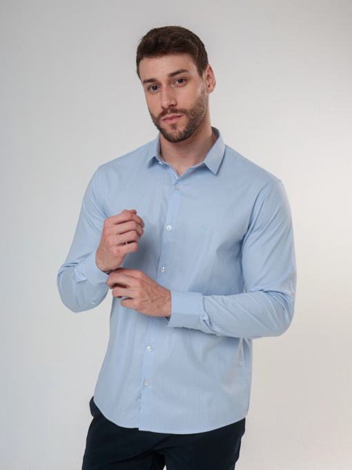 CAMISA CASUAL ML EM TRICOLINE FIO 50 C/ BORDADO SK REMOS NO TOM