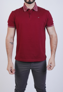 POLO CASUAL EM PIQUET FLAMÊ COM RETILINEA EM JACQUARD