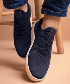 TÊNIS CASUAL KNIT C/ DETALHES EM COURO E CADARÇO ELÁSTICO