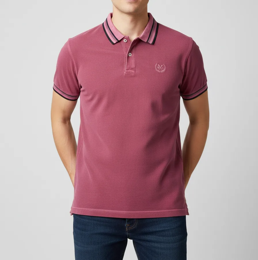 POLO CASUAL EM MALHA CREPE PA C/ FILETE DUPLO NA RETILINEA