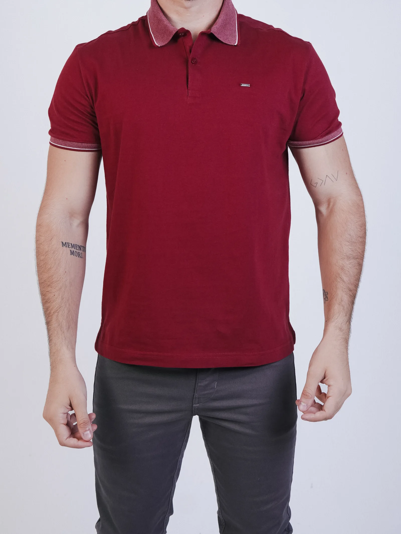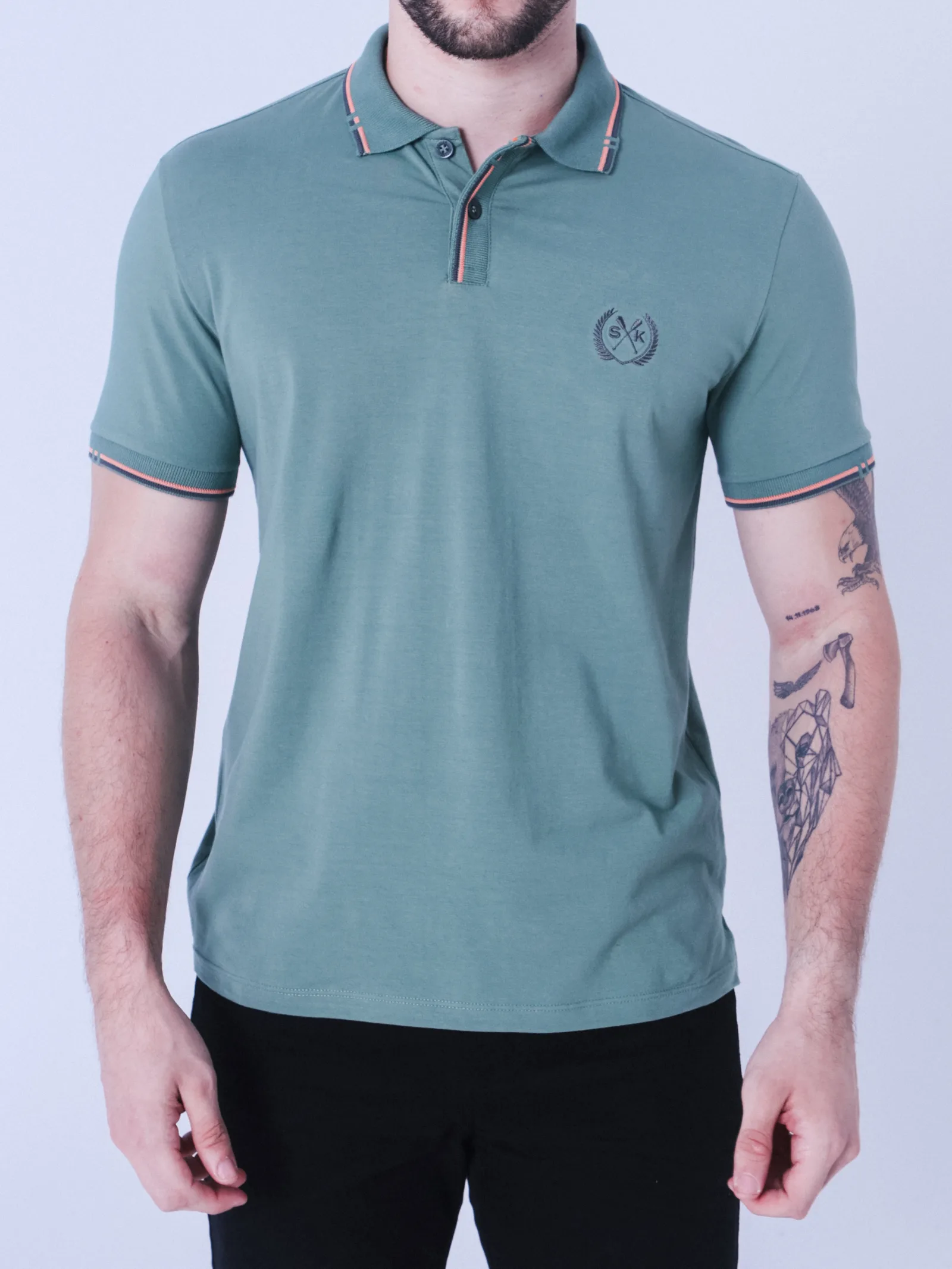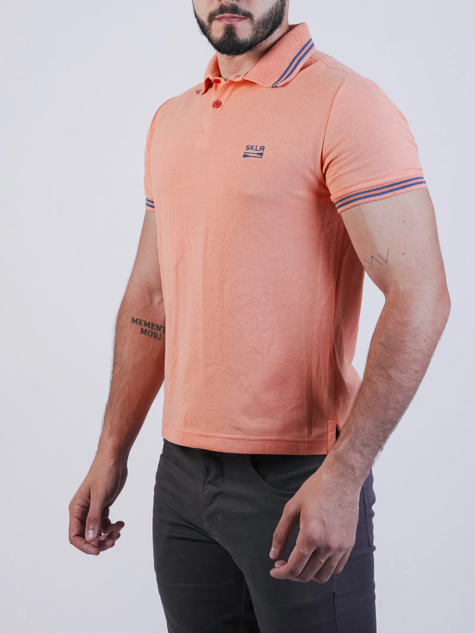 POLO CASUAL EM PIQUET P.A C/ GOLA JACQUARD E BORDADO SKLR CONTRASTANTE