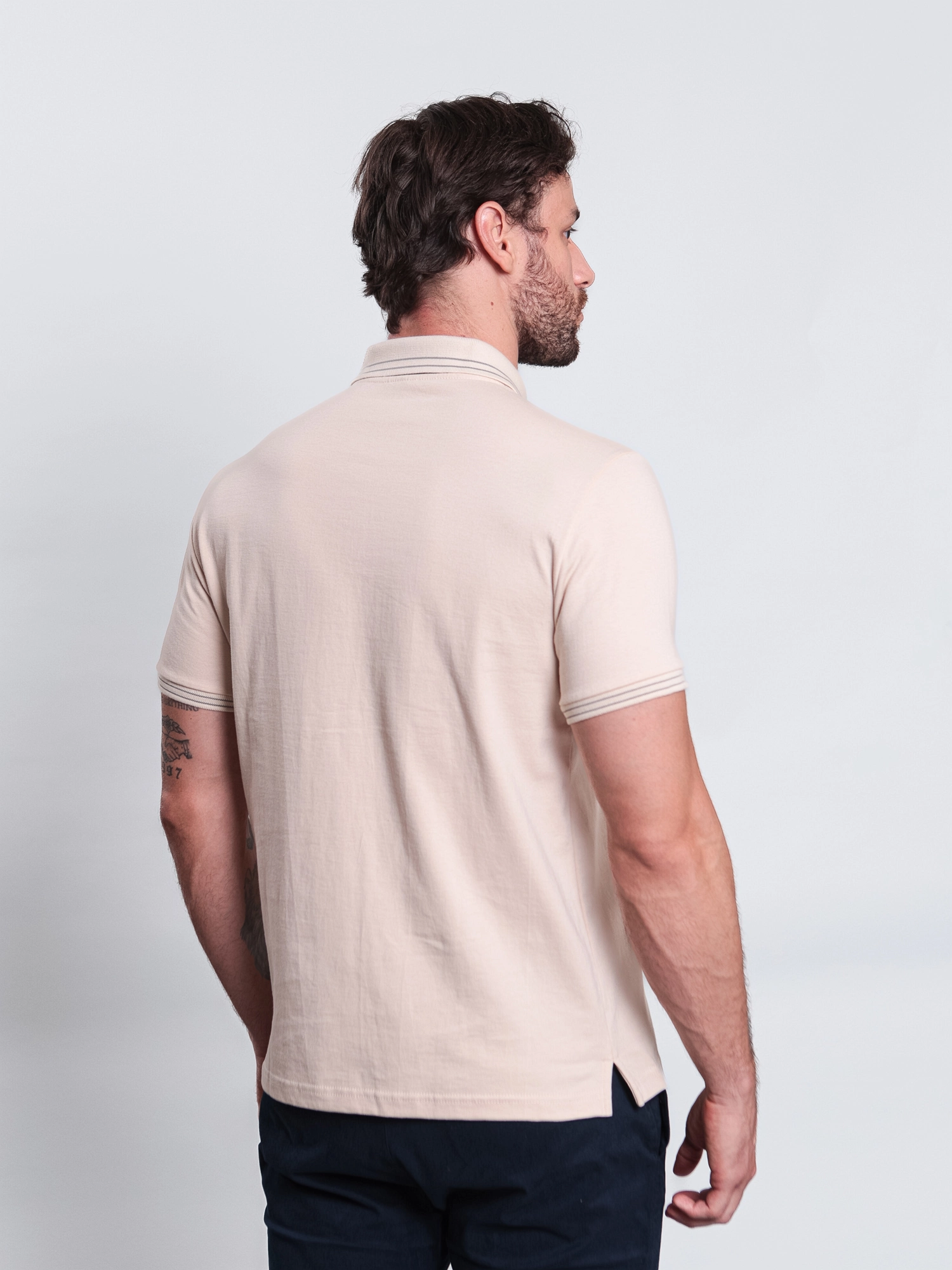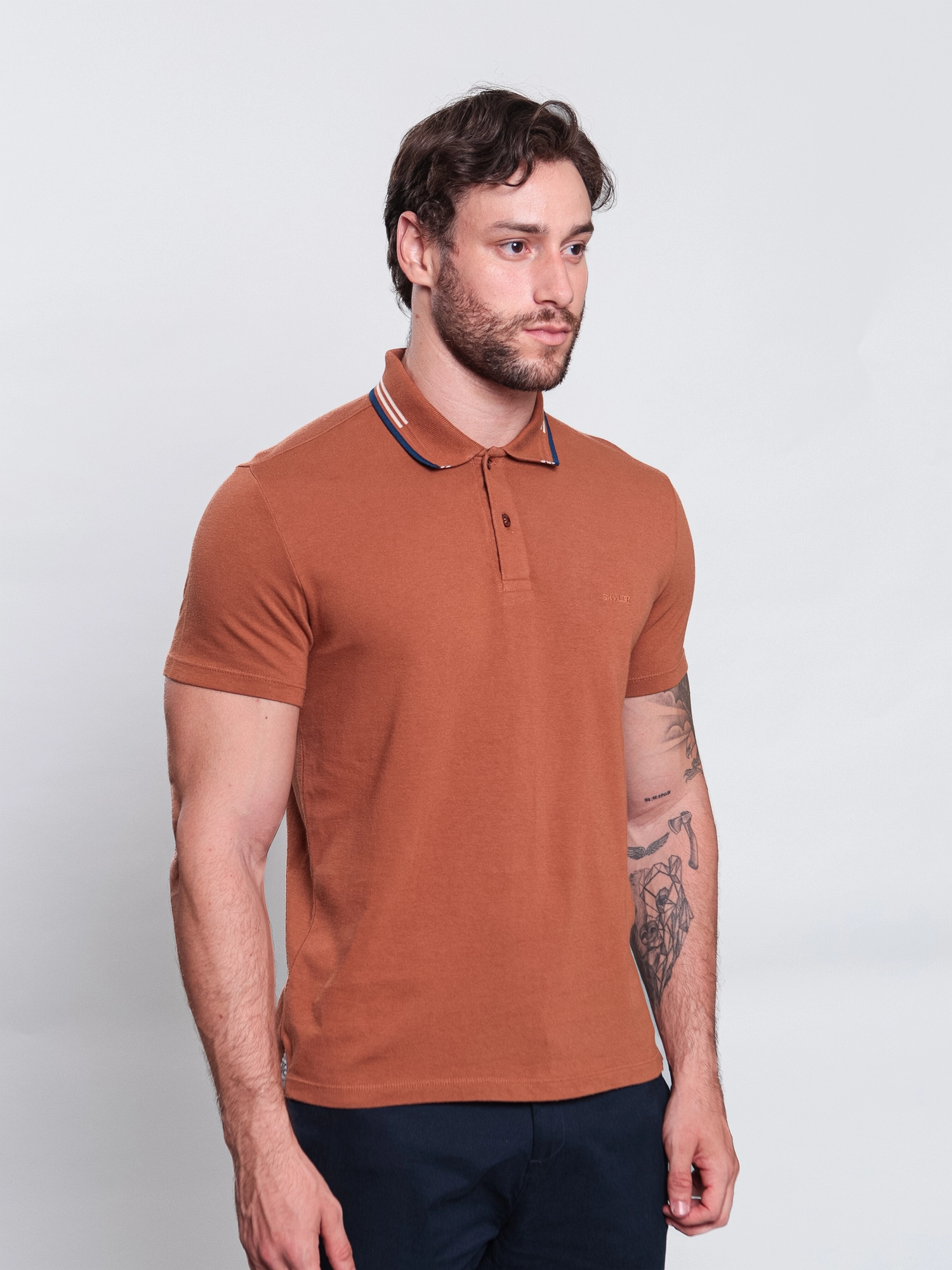 POLO CASUAL C/ FILETE CONTRASTANTE EM RETILINEA E BORDADO SKYLER NO TOM