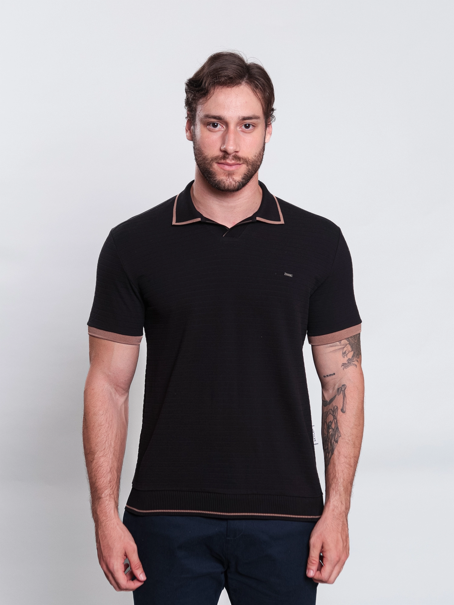 POLO CASUAL EM MALHA PIQUET JET C/ FILETE CONTRASTANTE