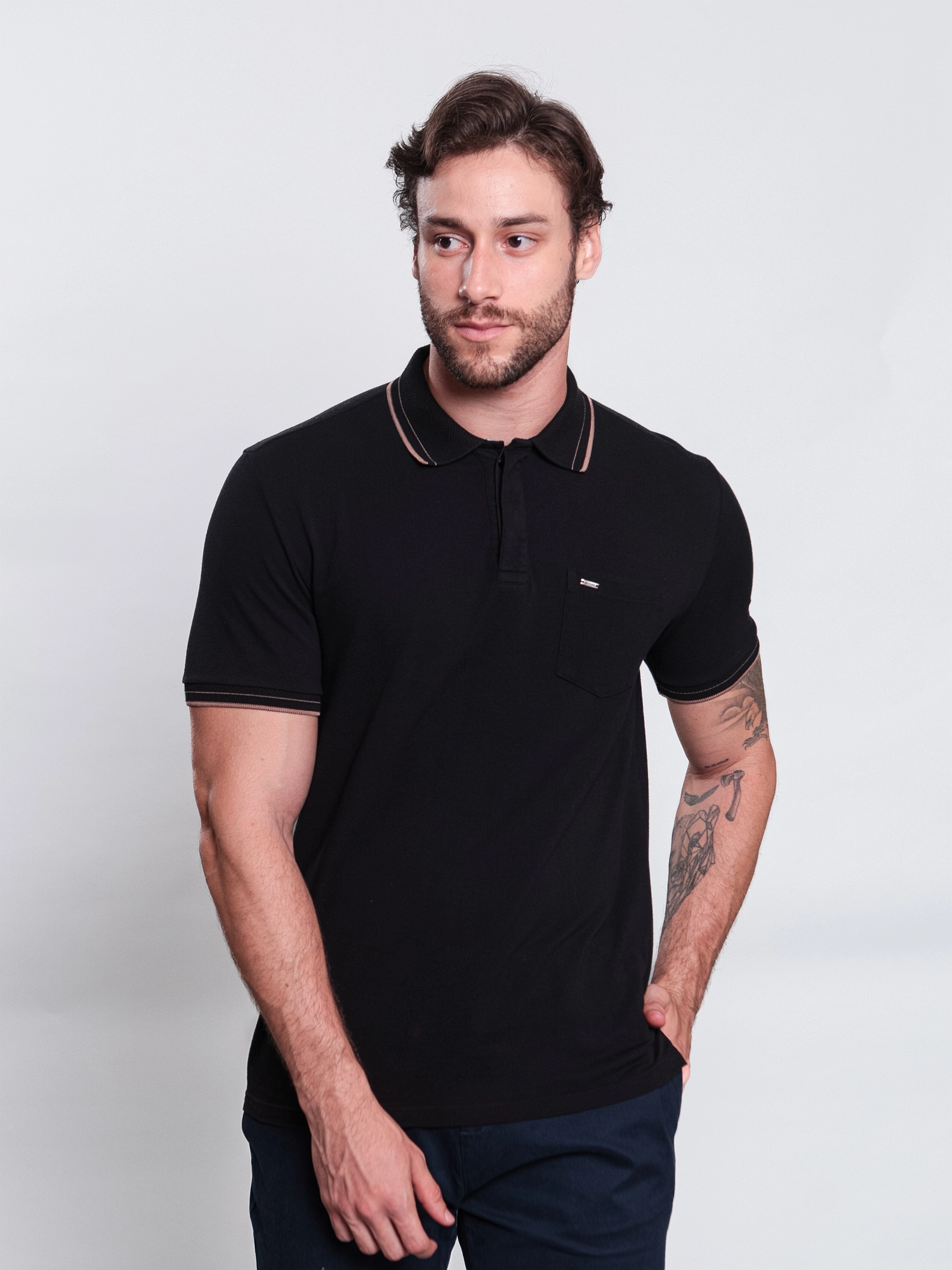 POLO CASUAL EM PIQUET C/ PEITILHO COBERTO E BOLSO C/ PLAQUINHA