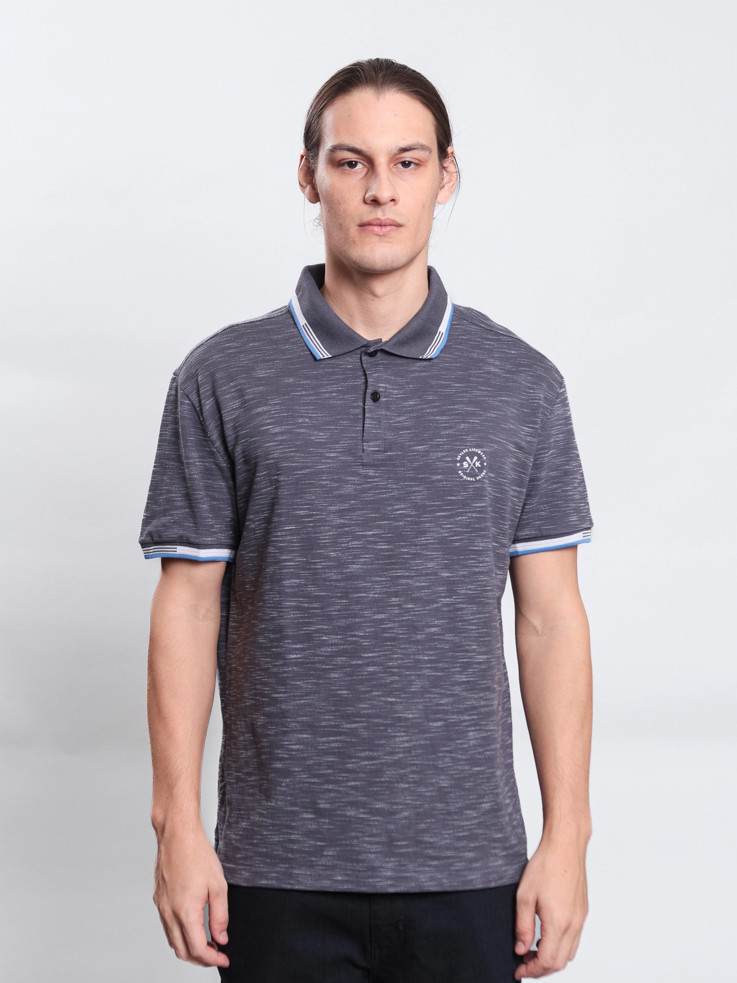 POLO CASUAL EM PIQUET MESCLA C/ FILETE CONTRASTANTE E SILK EM RELEVO