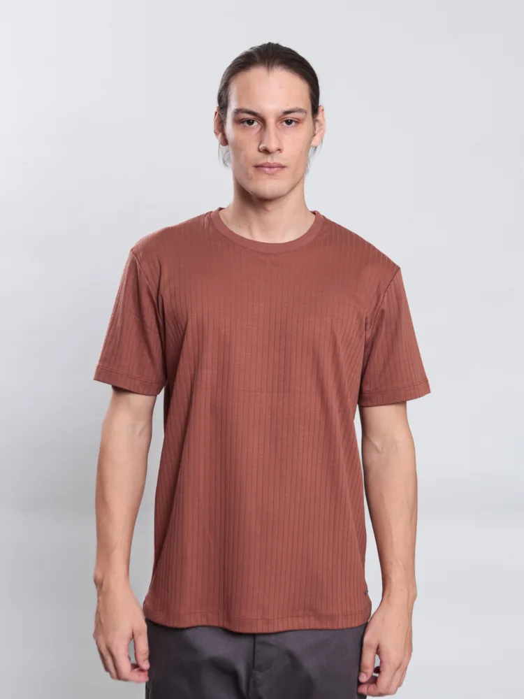 T-SHIRT CASUAL EM MALHA CAFÉ C/ PLAQUINHA SKYLER