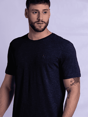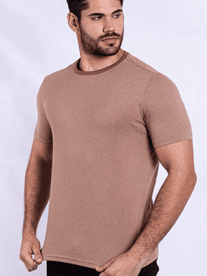 T-SHIRT CASUAL EM MALHA SUEDINE C/ SILK RELEVO SKYLER E GOLA CANELADA