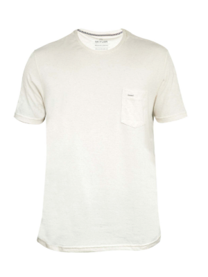T-SHIRT CASUAL EM MALHA C/ LINHO C/ BOLSO E PLAQUINHA