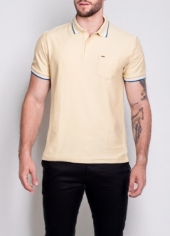 POLO CASUAL C/ FRISO 3D NA RETILÍNEA E C/ BOLSO E PLAQUINHA