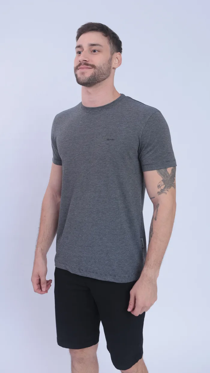 T-SHIRT CASUAL EM MALHA LISTRADA C/ SILK RELEVO SKYLER