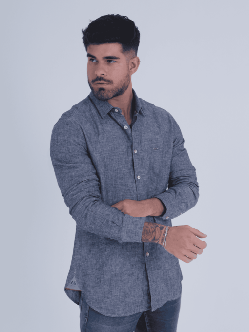 CAMISA ML CASUAL C/ LINHO AMACIADA C/ COLARINHO ANATÔMICO E PLAQUINHA