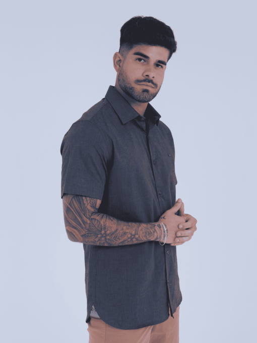 CAMISA MC CASUAL C/ COMPOSÊ NA PALA INTERNA E PLAQUINHA SKYLER