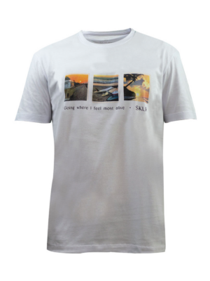 T-SHIRT CASUAL ESTAMPA CROMIA GOING WHERE I FEEL MOST ALIVE
