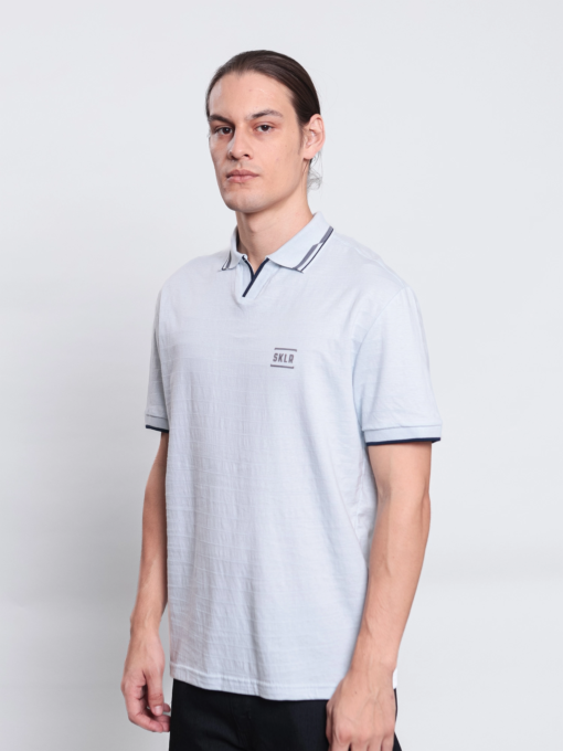 POLO CASUAL EM MALHA TEXTURIZADA C/ FILETE E SK NO TOM