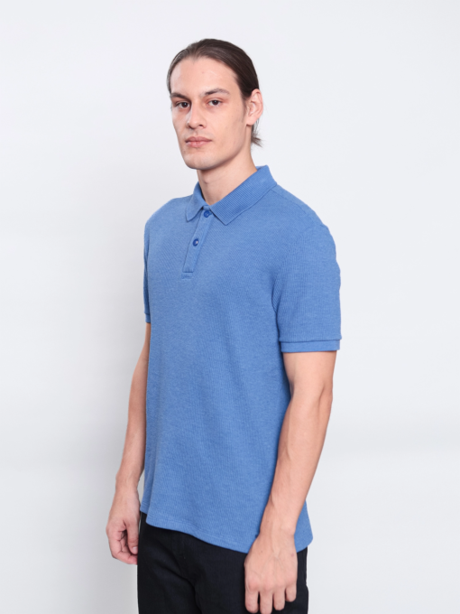 POLO CASUAL EM MALHA WAFFER C/ SILK SKLR NA BARRA E PEITILHO INTERNO EM RETILINE