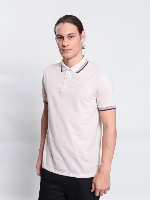 POLO PREMIUM EM ALGODÃO PIMA C/ PÉ DE GOLA E SK REMOS NO TOM OFF WHITE