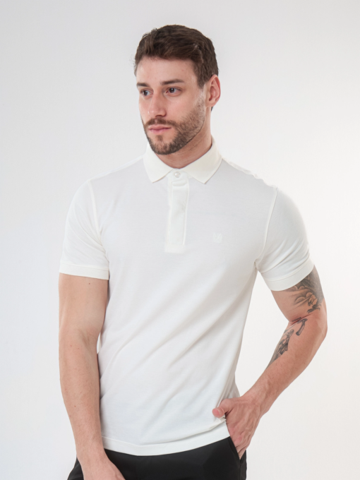 POLO PREMIUM EM ALGODÃO PIMA C/ PÉ DE GOLA E SK REMOS NO TOM BRANCO