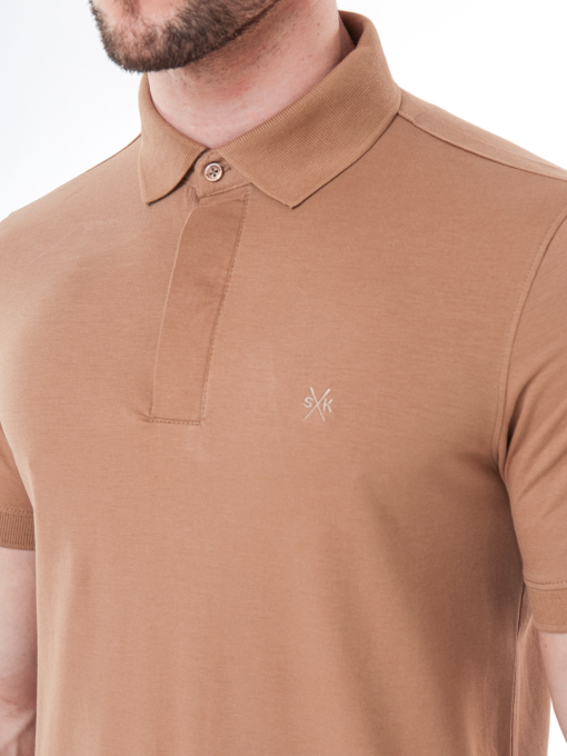 POLO PREMIUM EM ALGODÃO PIMA C/ PÉ DE GOLA E SK REMOS NO TOM MARROM CLARO