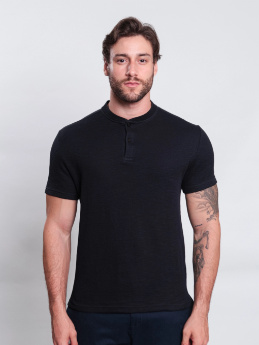 POLO PREMIUM EM MEIA MALHA ALGODÃO PIMA C/ SK REMOS NO TOM PRETO