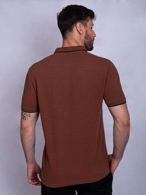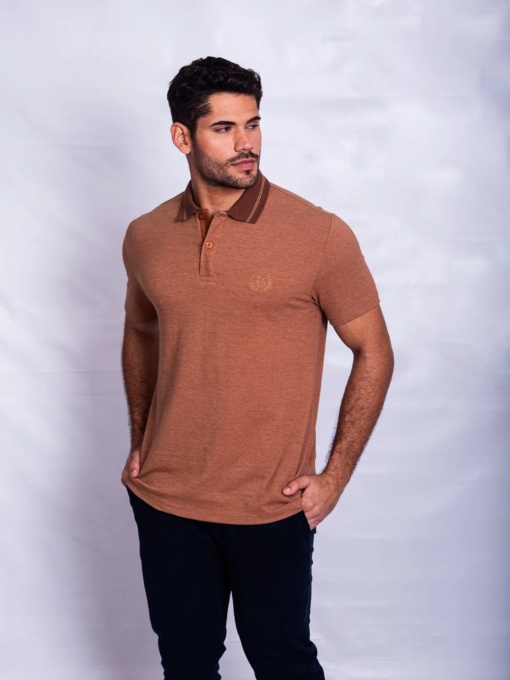 POLO CASUAL EM PIQUET FLAMÊ JACQUARD C/ BORDADO CONTRASTANTE