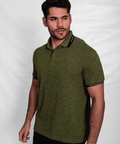 POLO CASUAL EM PIQUET C/ LINHO C/ PEITILHO INTERNO EM RETILÍNEA