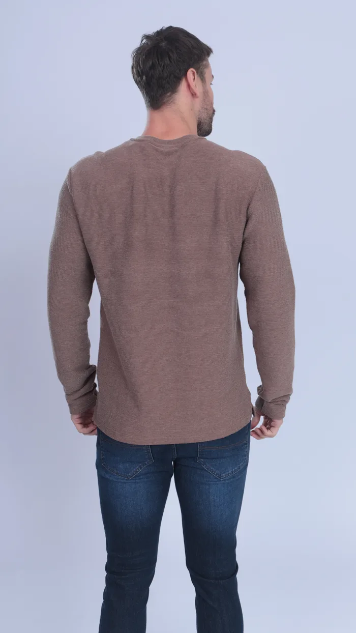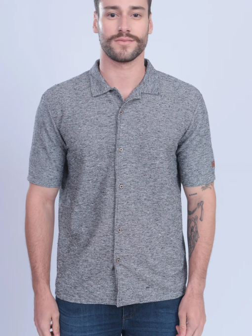 CAMISA CASUAL EM MOLETOM CANELADO C/ ETIQUETA SKLR EM COURO