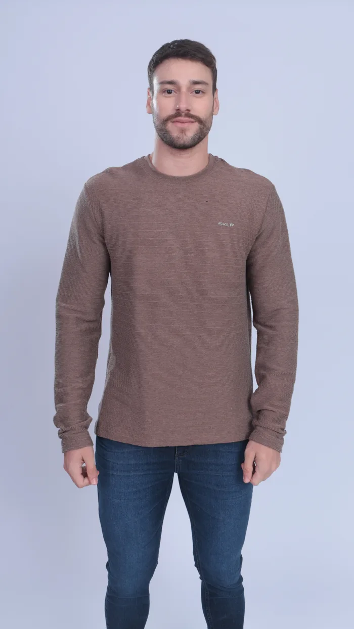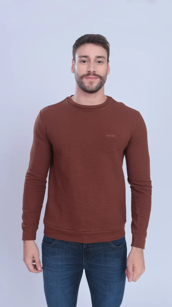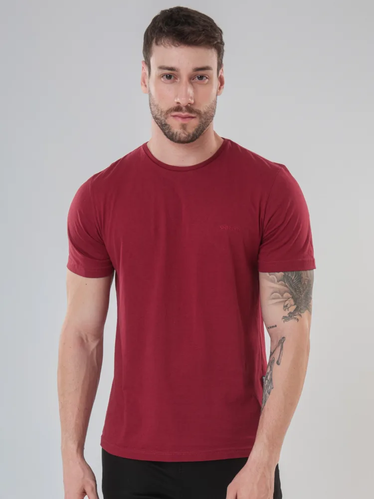 TSHIRT CASUAL EM MALHA CANELADA C/ BORDADO SKYLER NO TOM