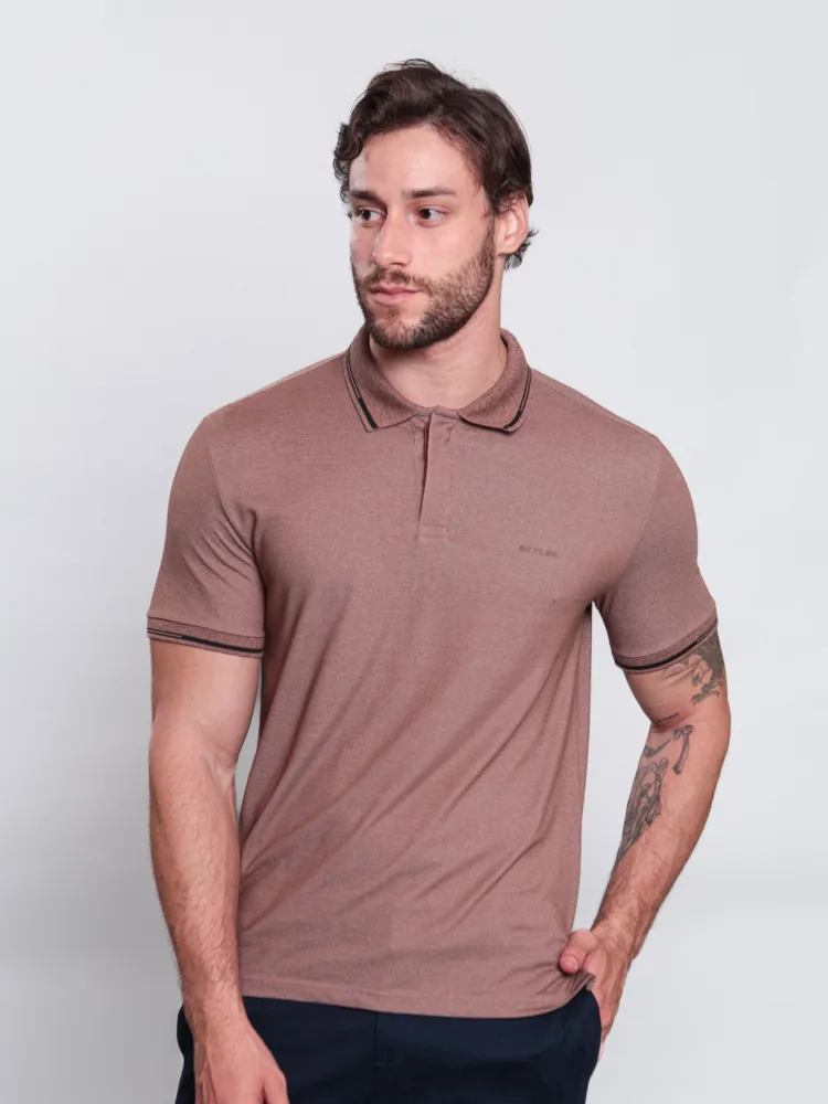 POLO CASUAL C/ PEITILHO COBERTO E FILETE CONTRASTANTE