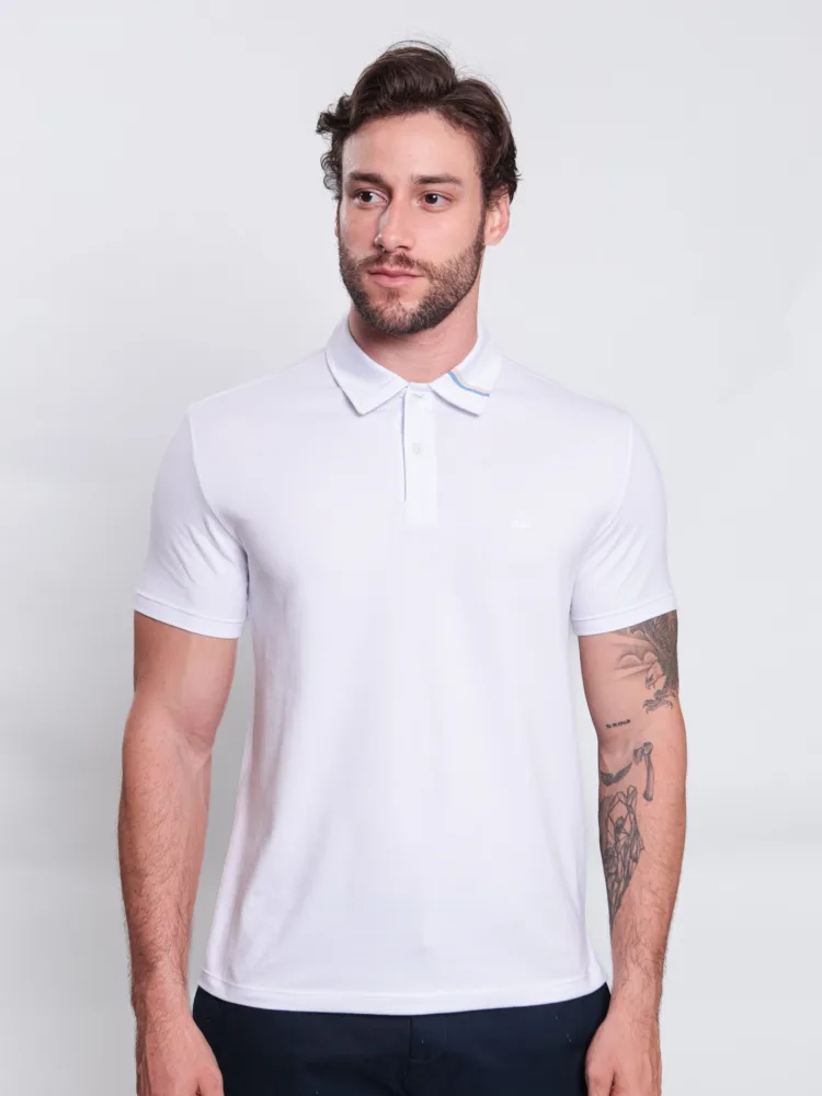 POLO CASUAL C/ SILK LISTRADO NA GOLA E SILK SKLR 1997 EM RELEVO