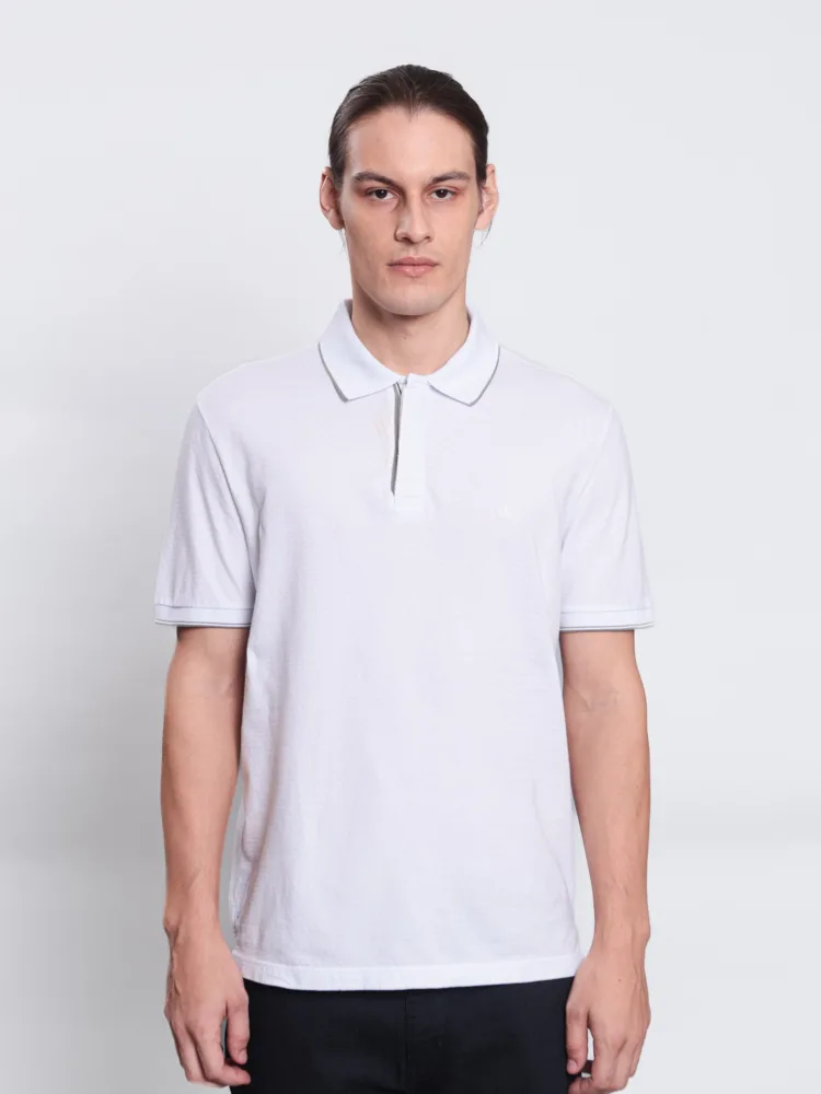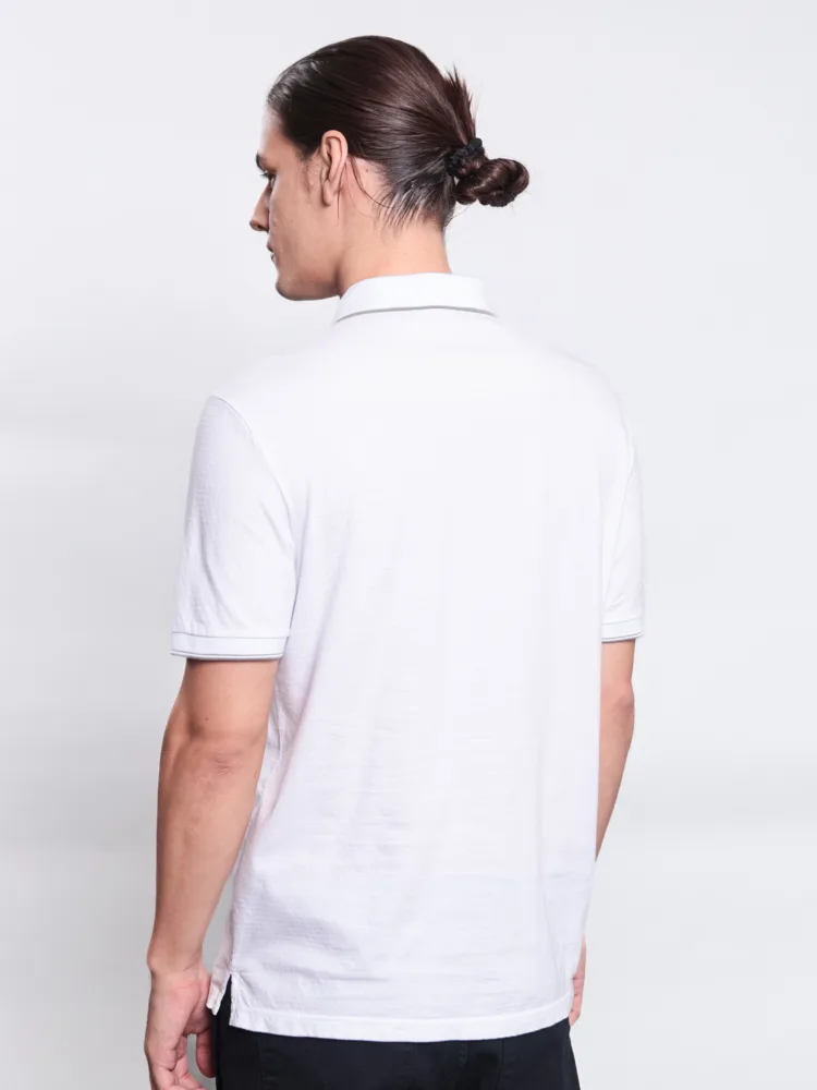 POLO CASUAL EM MALHA JACQUARD C/ PEITILHO EM RETILINEA COBERTO