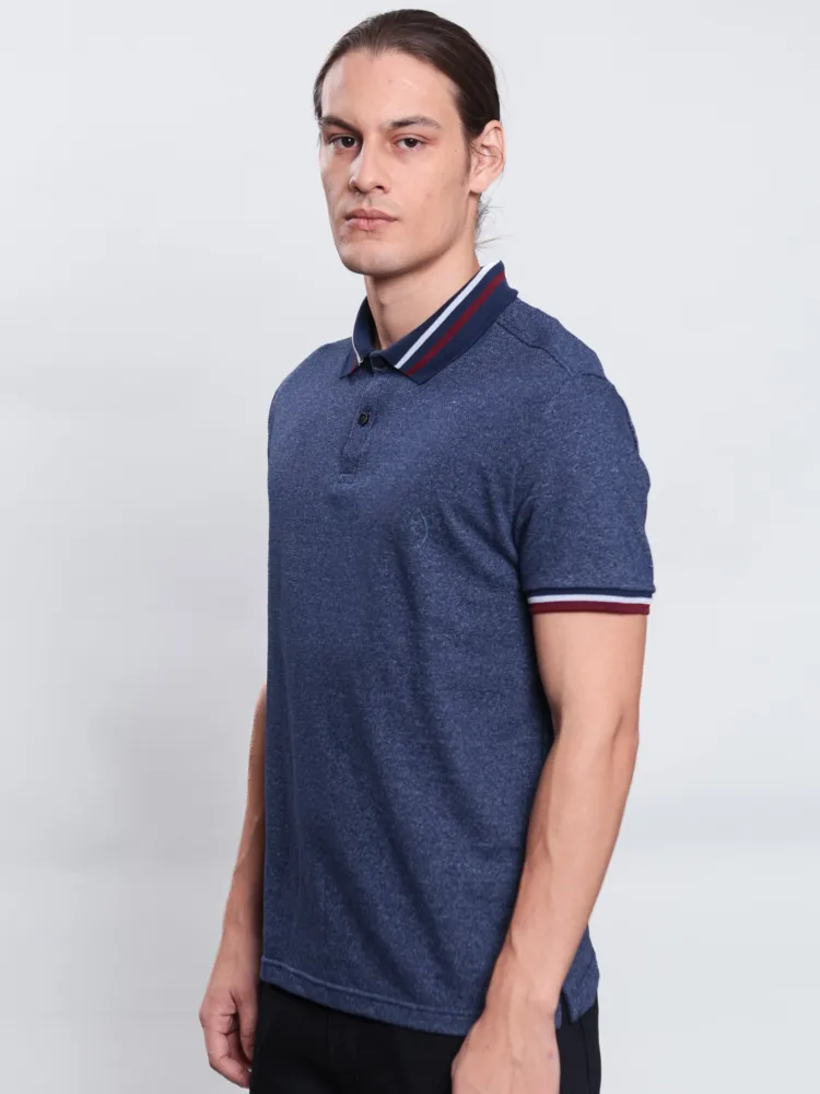 POLO CASUAL EM MALHA TRABALHADA E GOLA NÁUTICA