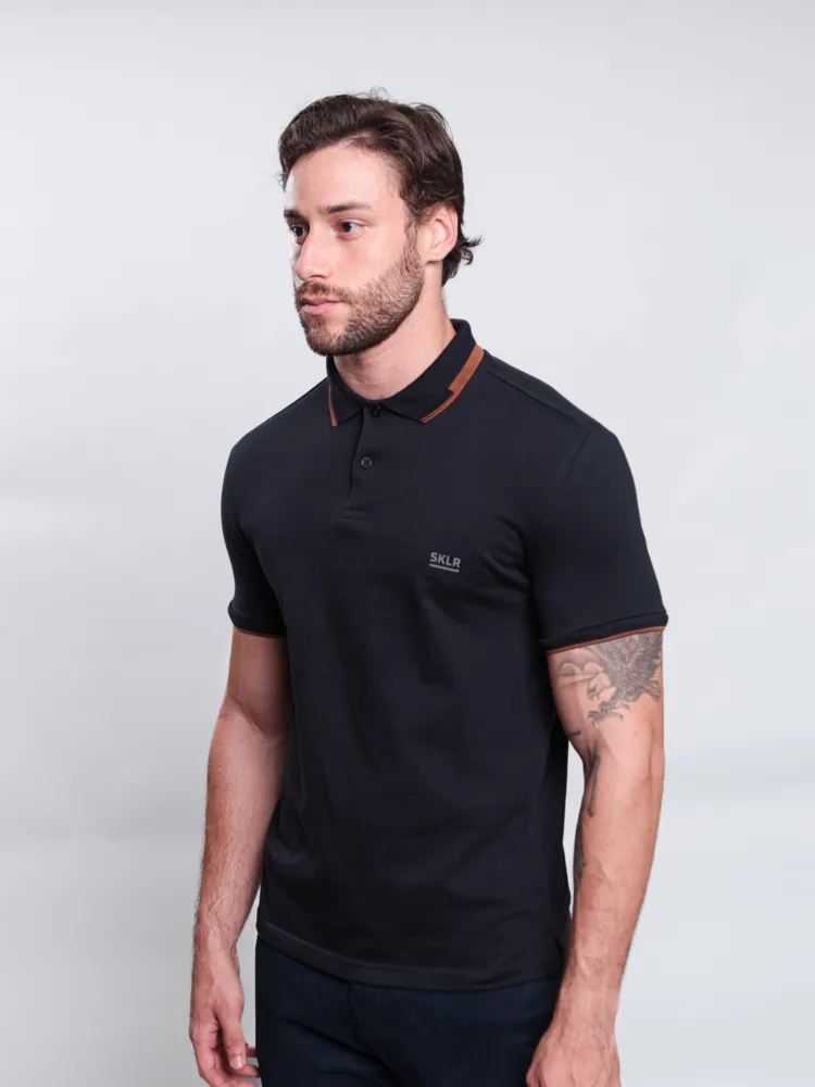 POLO CASUAL EM MALHÃO C/ FILETE CONTRASTANTE E SKLR EM SILK RELEVO