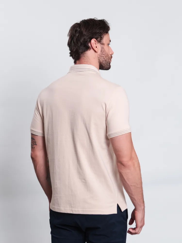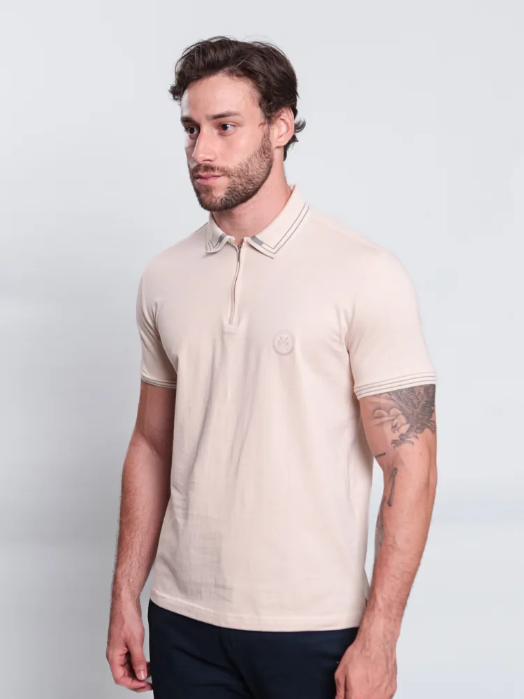 POLO CASUAL EM MALHÃO C/ ZÍPER, SILK NO TOM E FILETE CONTRASTANTE