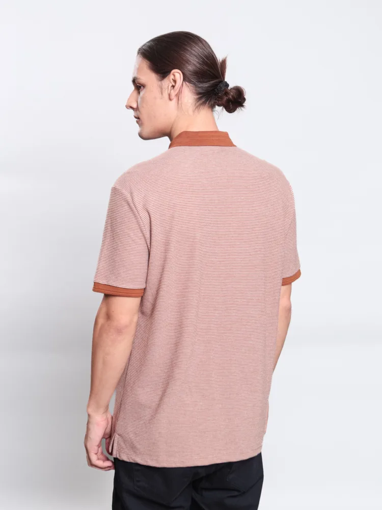 POLO CASUAL EM PIQUET DUPLO LISTRADO E PLAQUINHA SKYLER