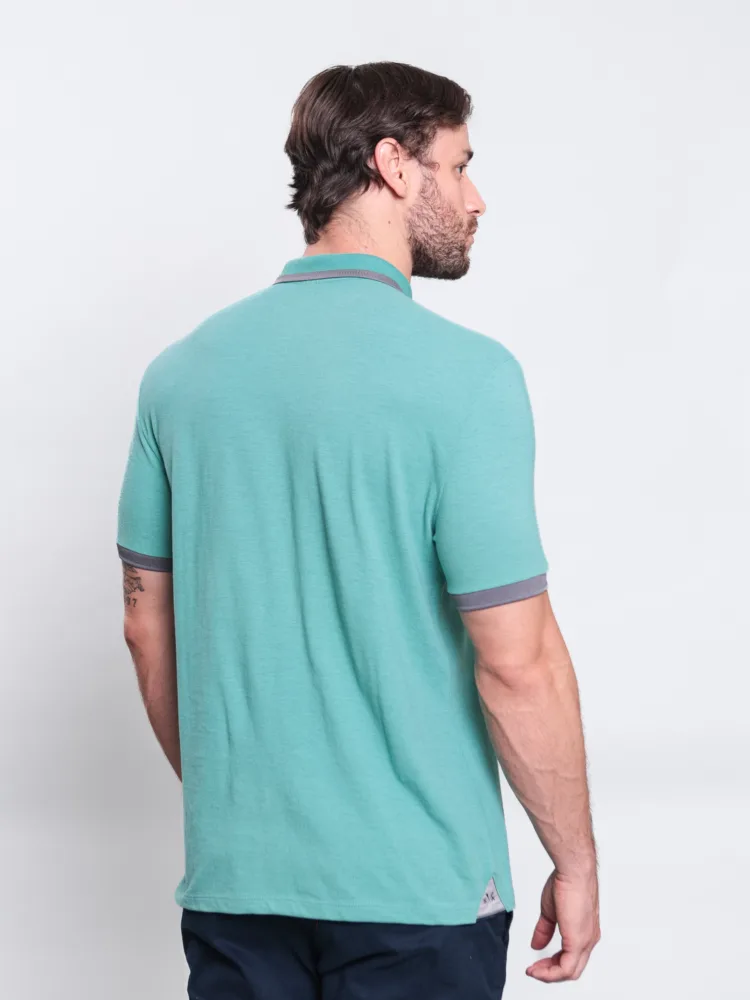 POLO CASUAL EM PIQUET MESCLA C/ FILETE CONTRASTANTE E SILK EM RELEVO