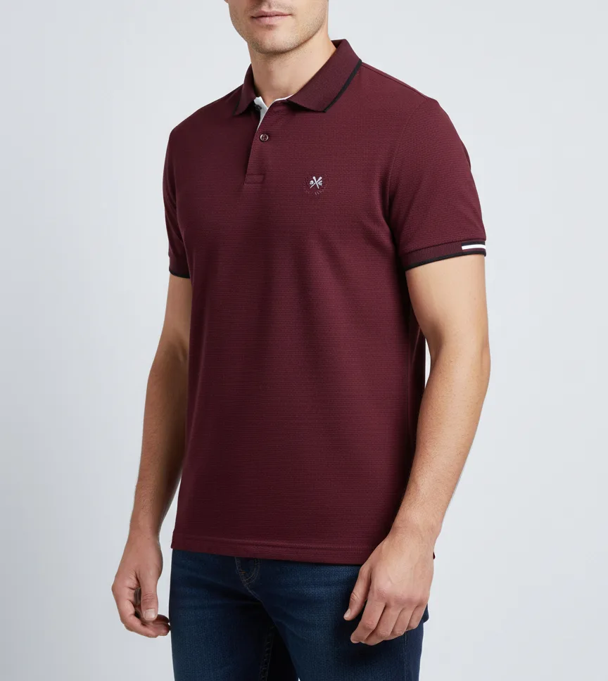 POLO CASUAL MAQUINETADA C/ PEITILHO INTERNO E BORDADO CONTRASTANTE