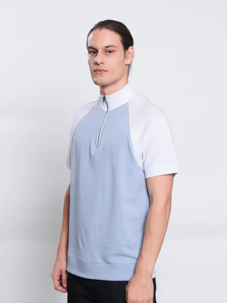 POLO CASUAL RAGLAN EM PIQUET C/ GOLA ALTA EM RIBANA E ZÍPER
