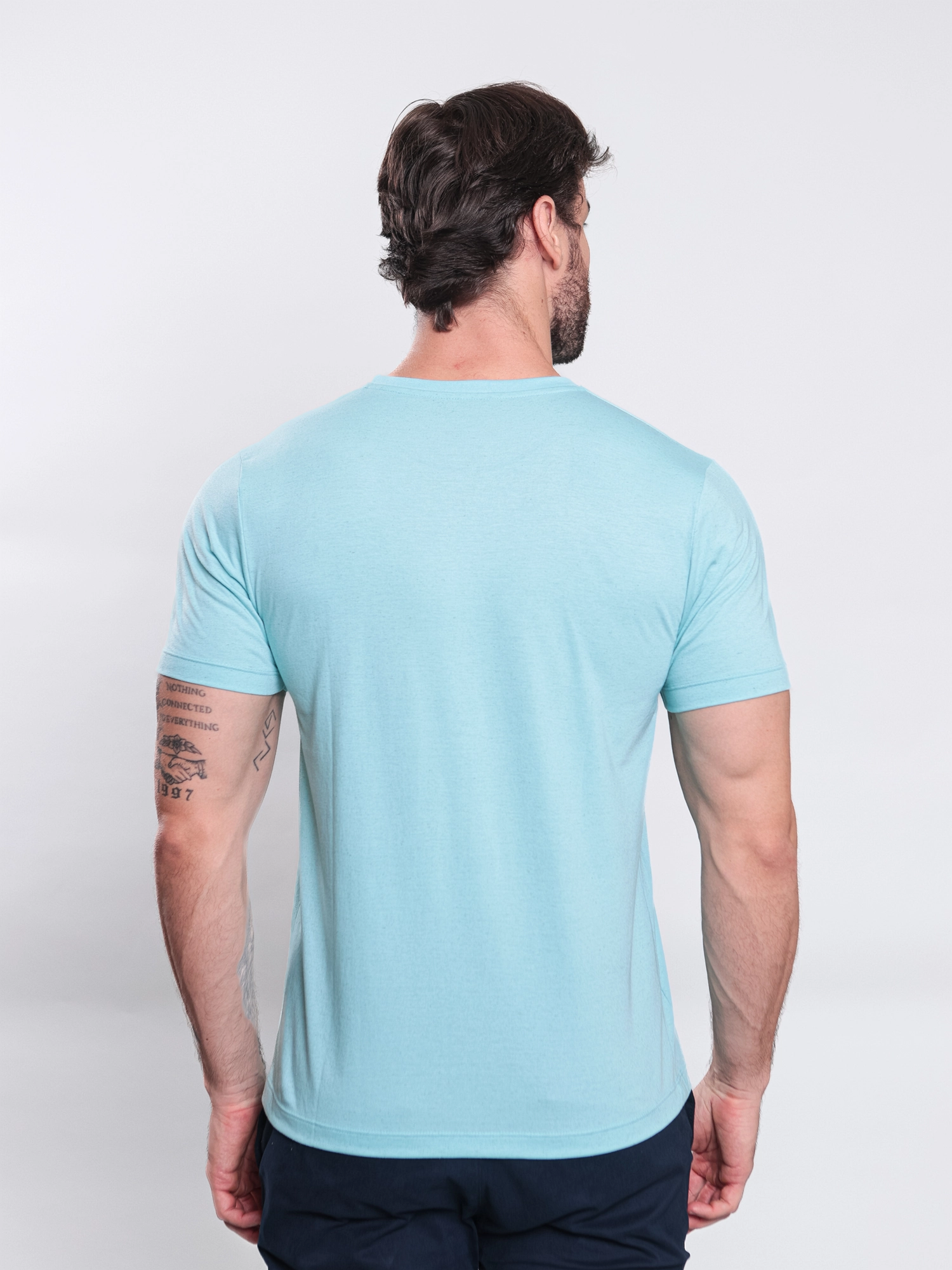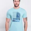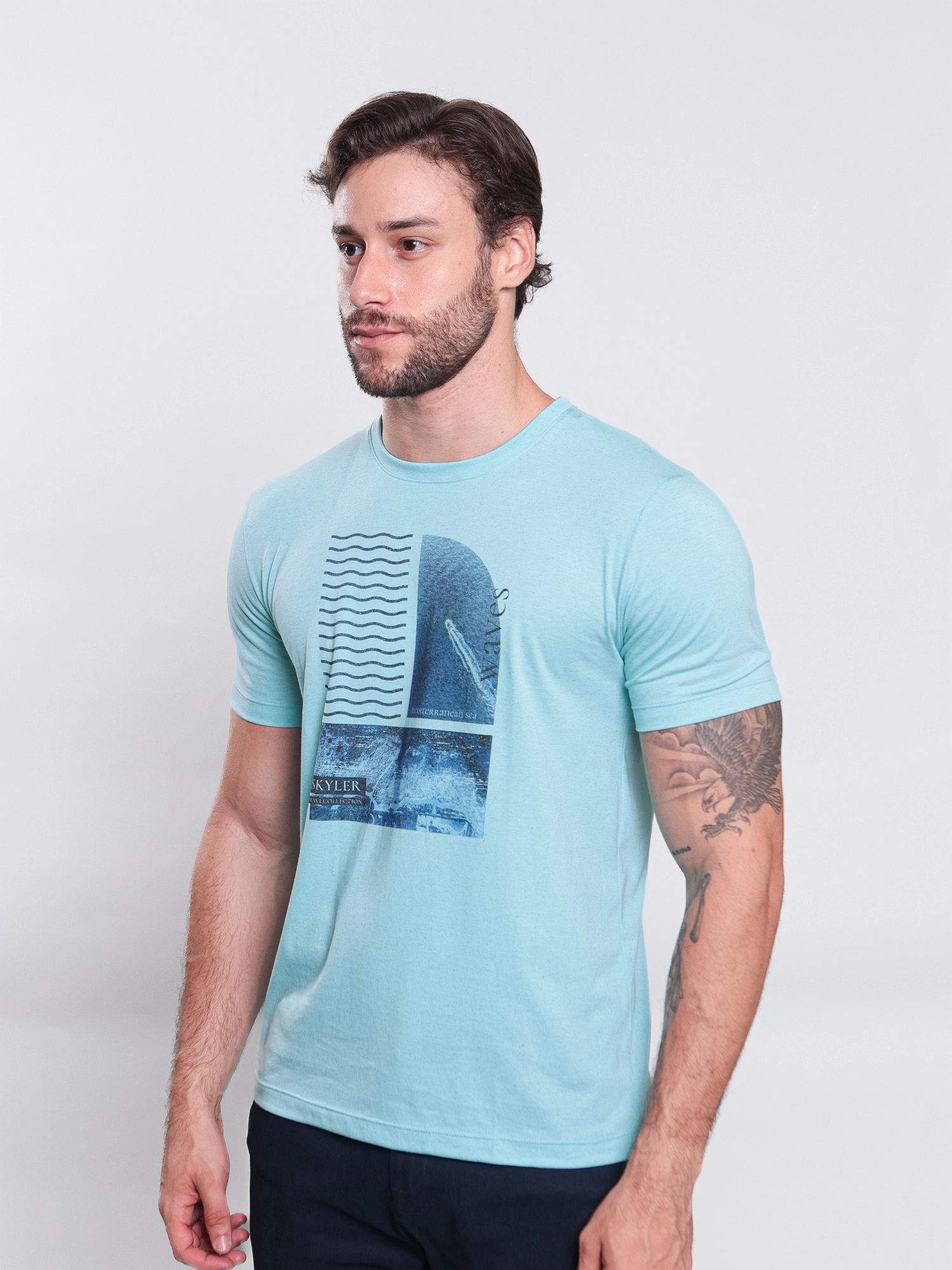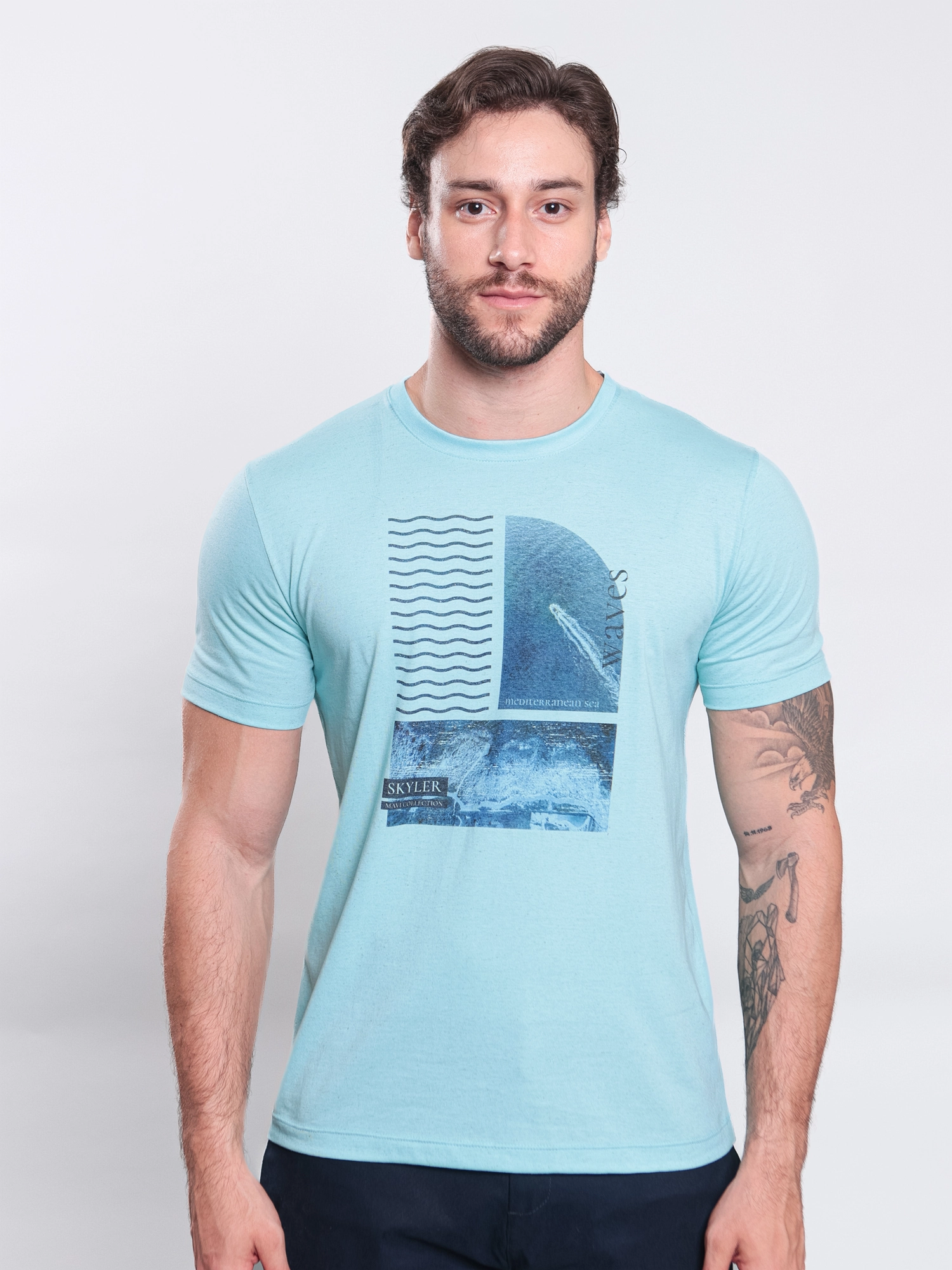 T-SHIRT CASUAL EM MALHA C/ LINHO E ESTAMPA WAVES