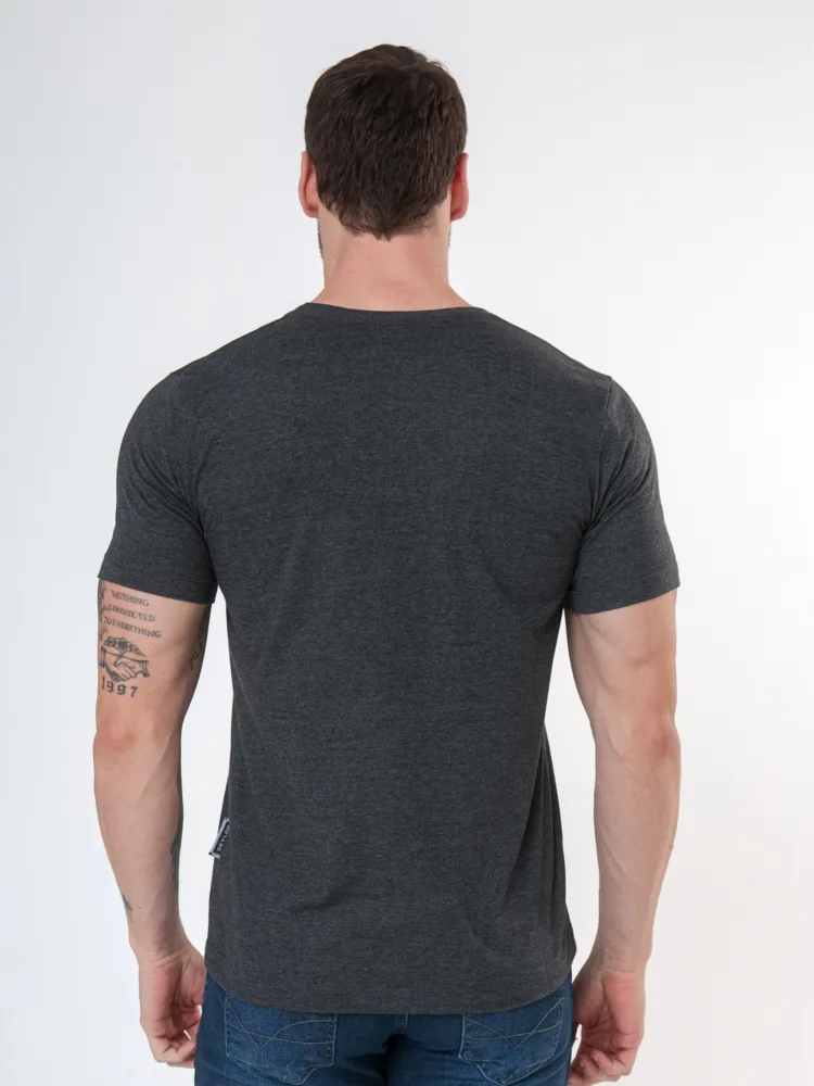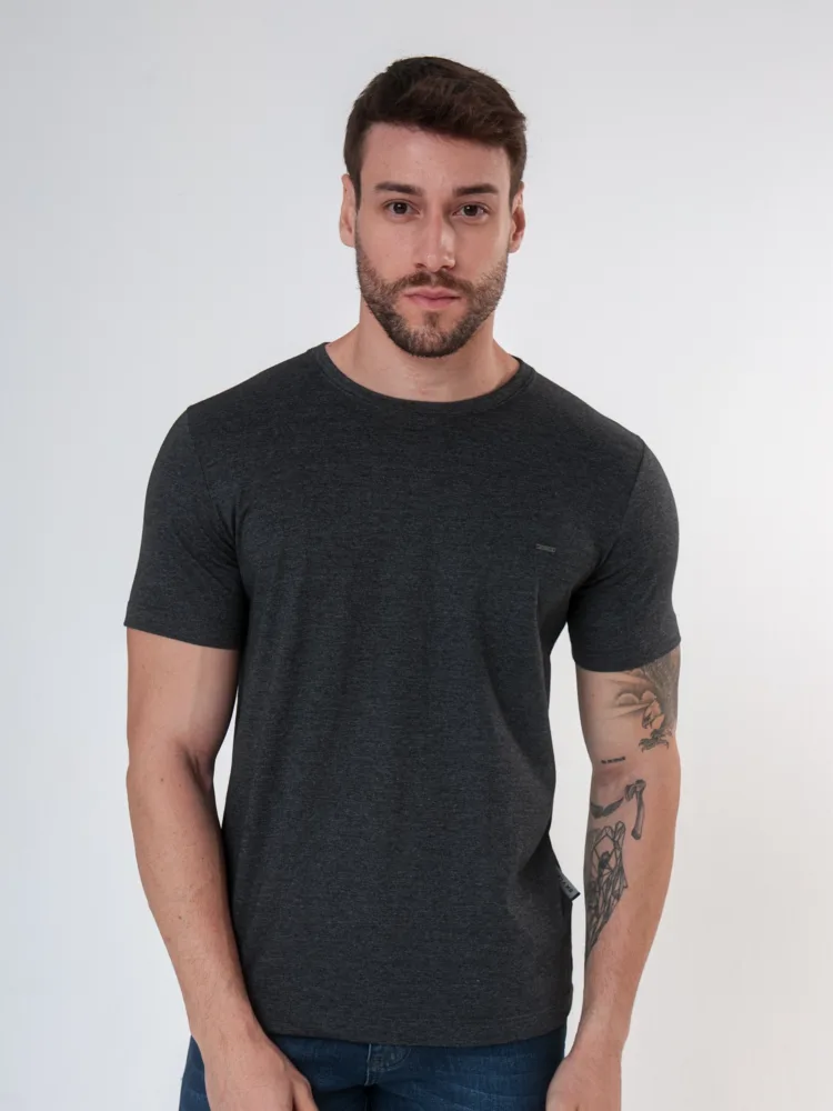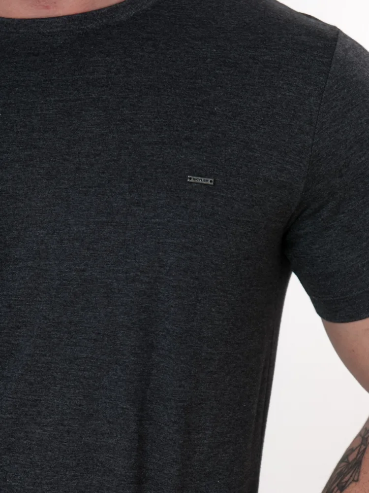 T-SHIRT CASUAL EM MALHA CAFÉ C/ PLAQUINHA SKYLER
