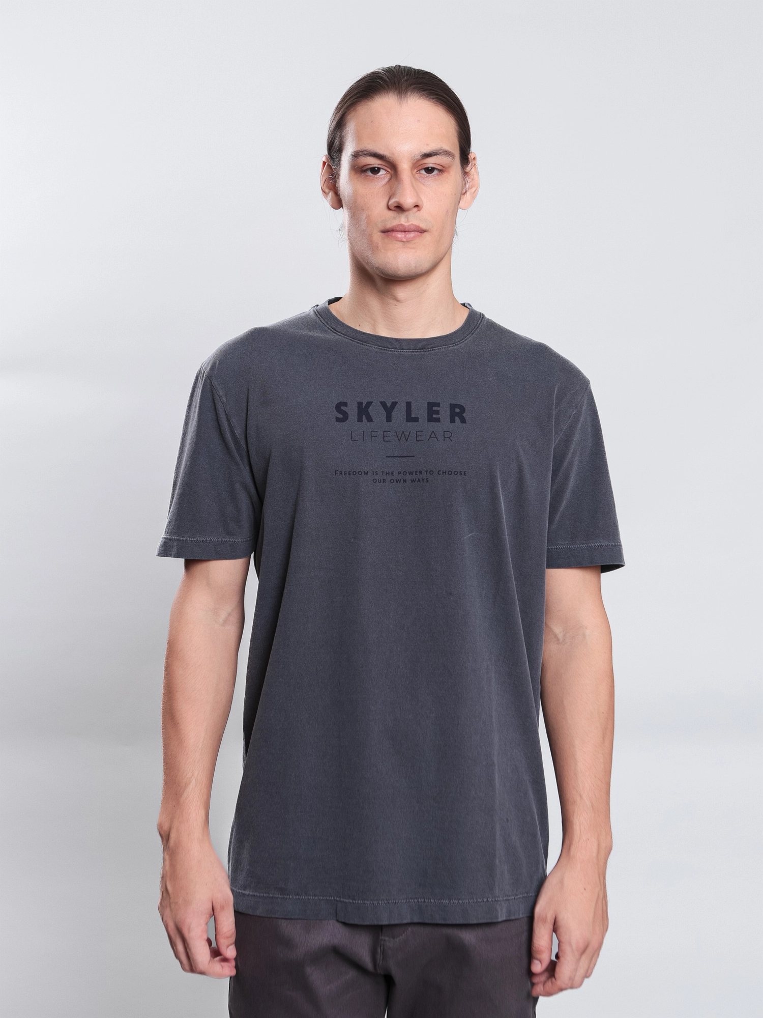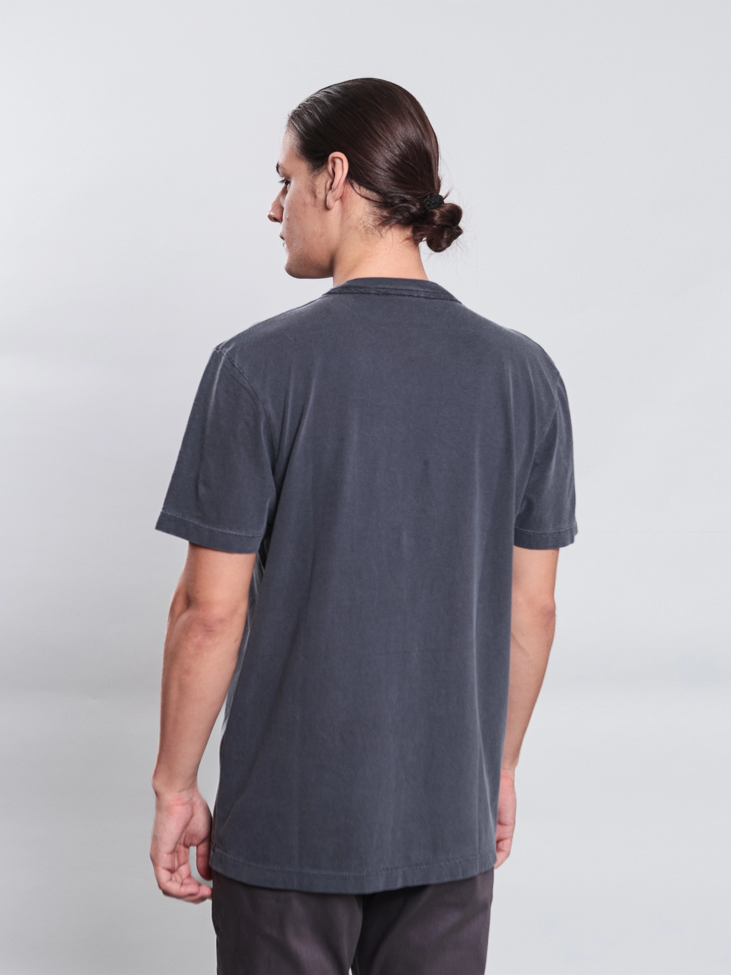 T-SHIRT CASUAL EM MALHA ESTONADA C/ ESTAMPA NO TOM
