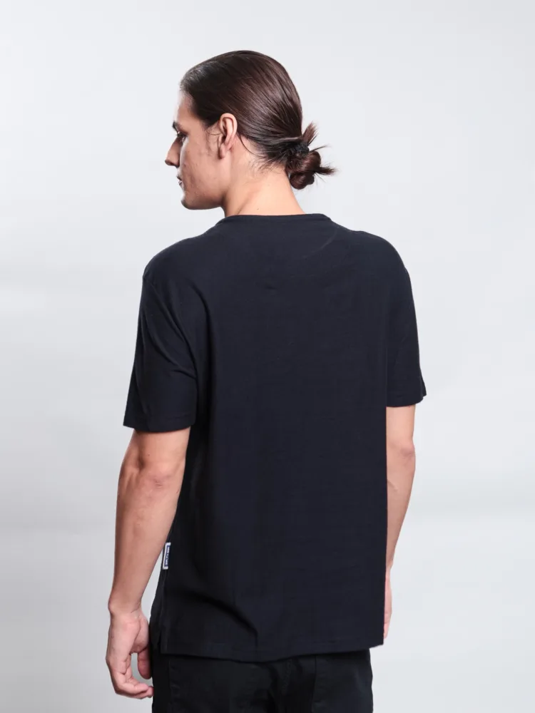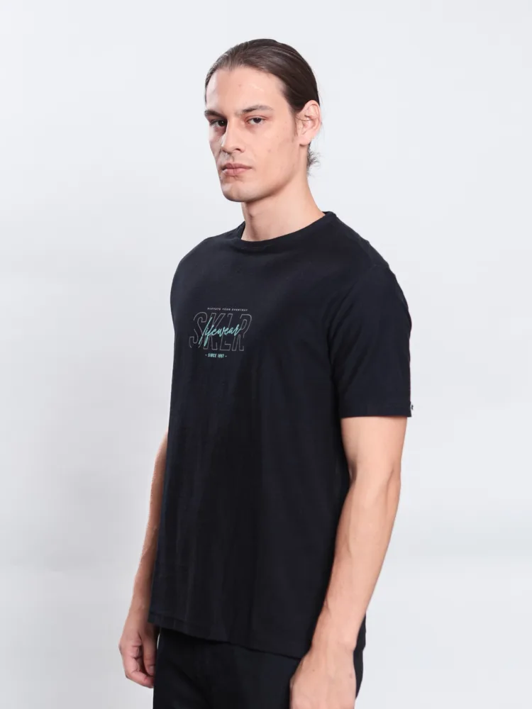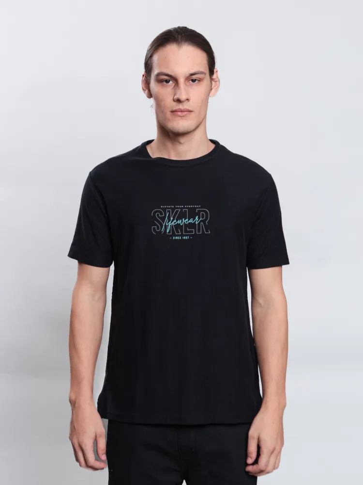 T-SHIRT CASUAL EM MALHA SARJADA C/ ESTAMPA SKLR LIFEWEAR EM SILK RELEVO