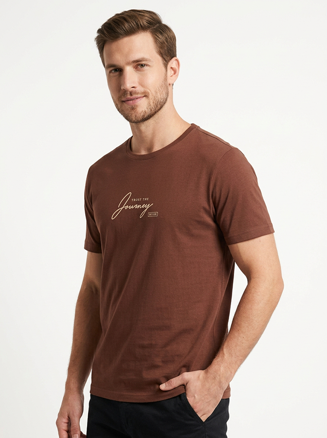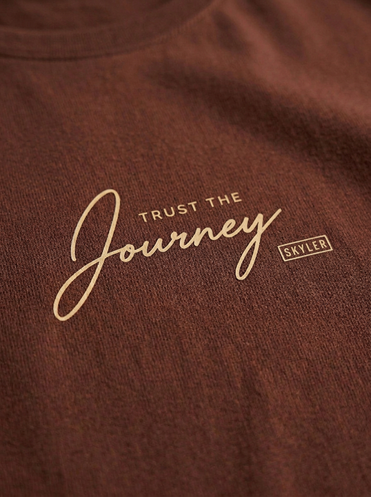 T-SHIRT CASUAL EM MALHÃO C/ ESTAMPA TRUST THE JOURNEY EM SILK