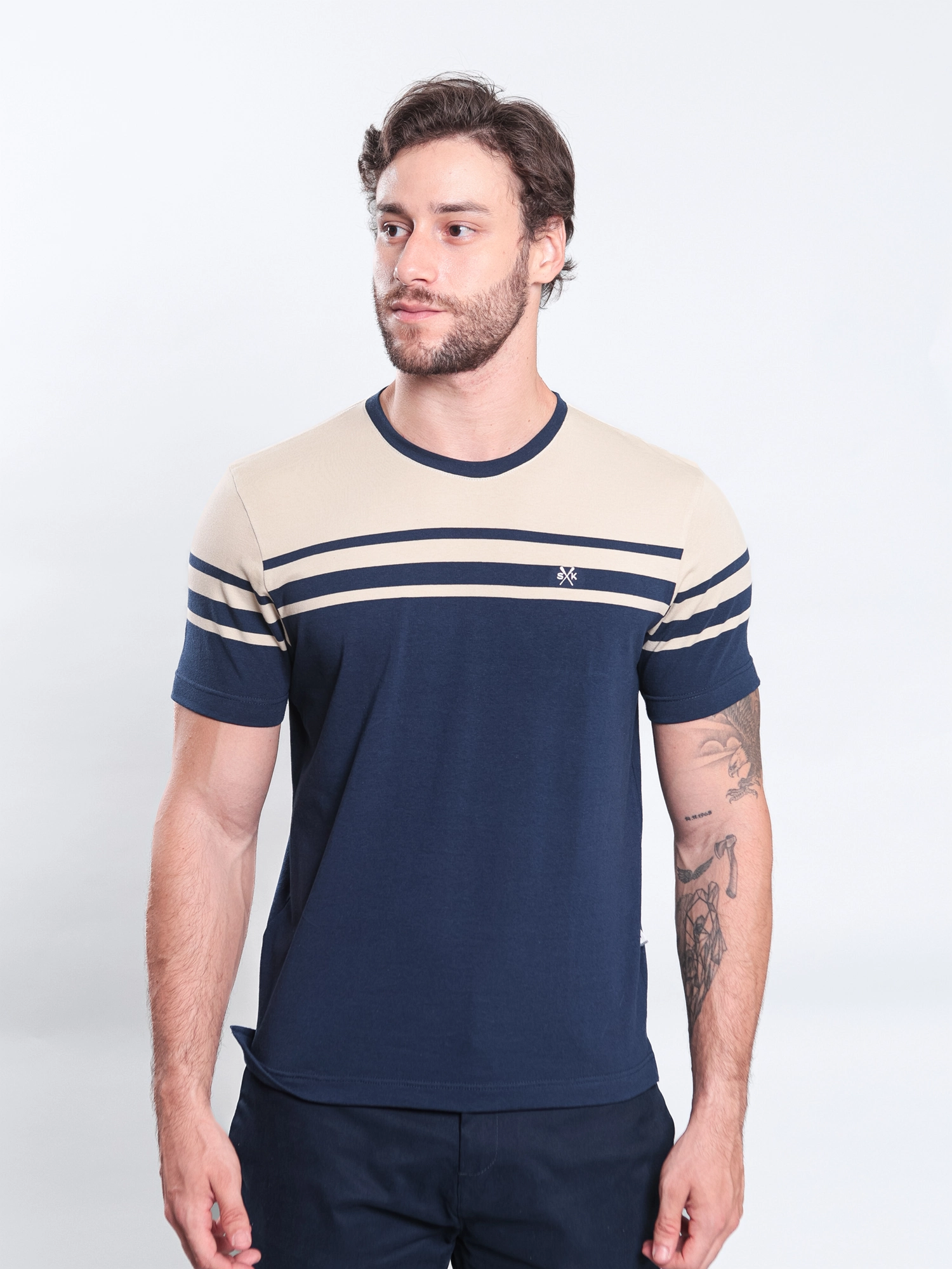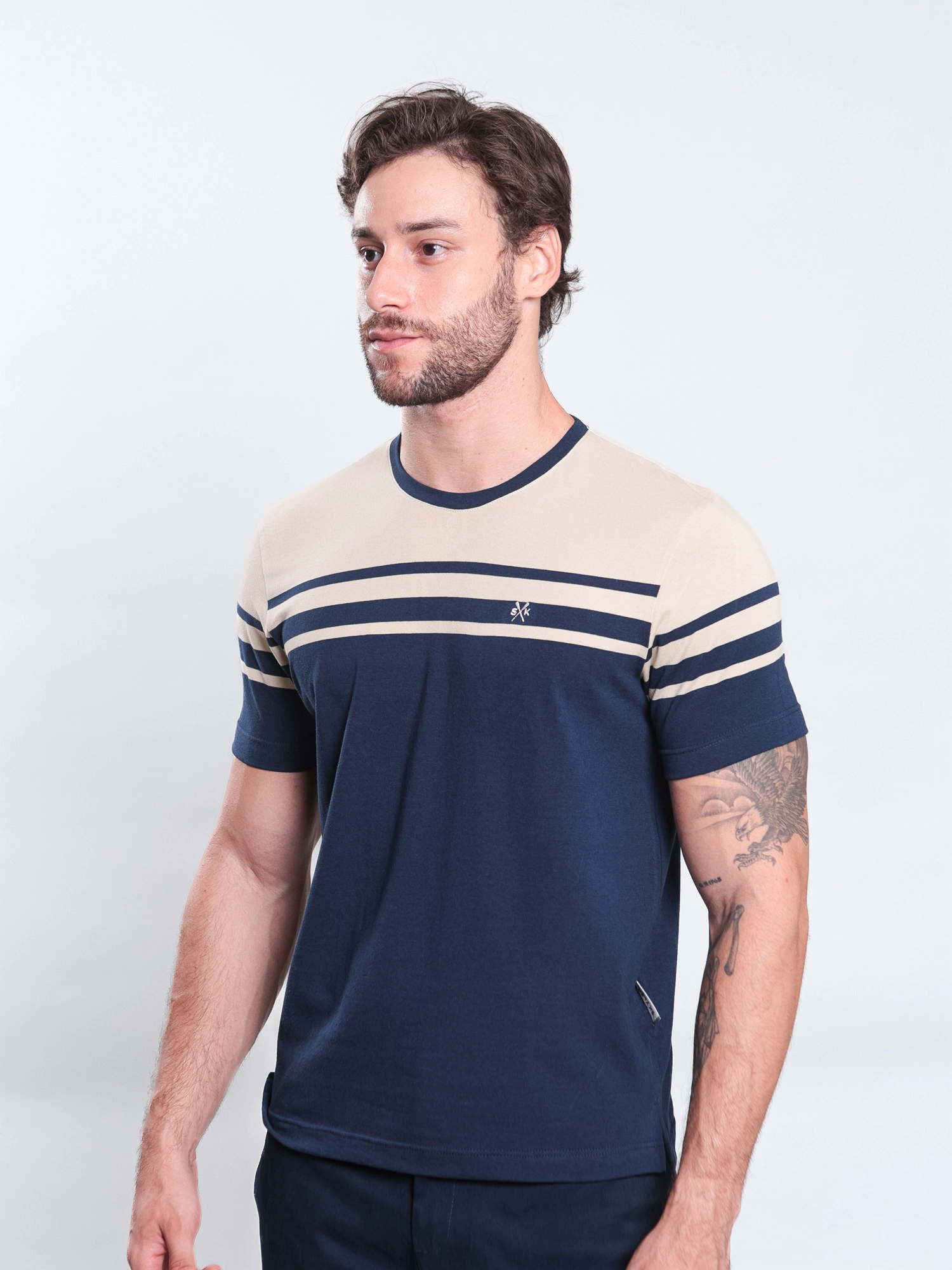 T-SHIRT CASUAL FT EM MEIA MALHA C/ ELASTANO