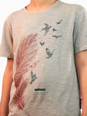 T-SHIRT CASUAL INFANTIL FLAMÊ C/ VISCOSE PENA E PÁSSAROS