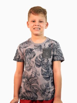 T-SHIRT INFANTIL FLORAL C/ BOLSO CHAMBRAY