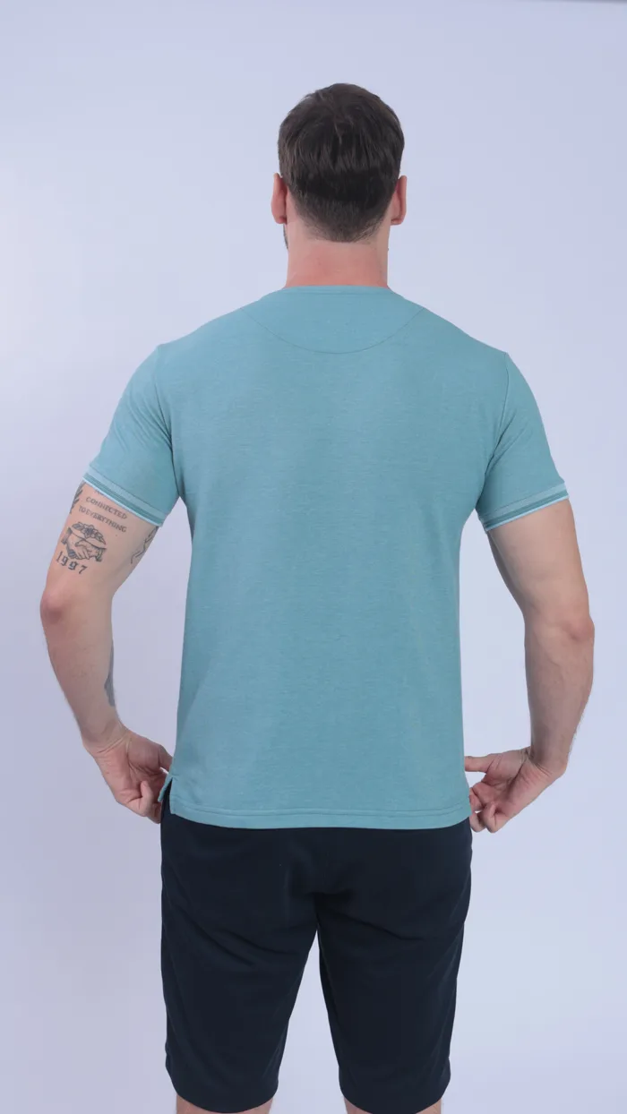 TSHIRT CASUAL EM PIQUET BINADO E PLAQUINHA NA BARRA